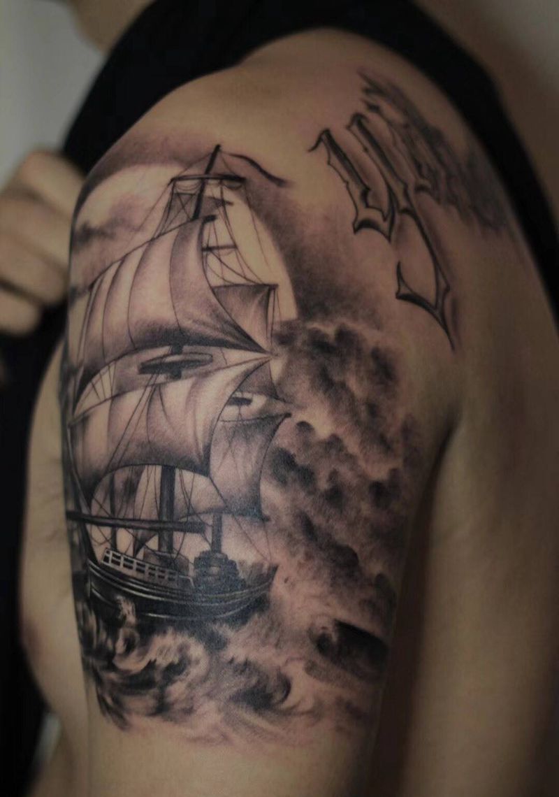 当前位置: 首页 >湖南省长沙市纹身店-深白刺青纹身图案>帆船纹身图片_手臂欧美写实船纹身图案