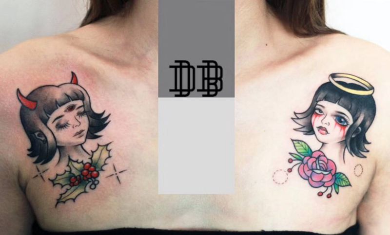 当前位置: 首页 >湖南省长沙市纹身店-深白刺青纹身图案>卡通花肩纹身图片_肩部胸部欧美写实New School天使纹身图案