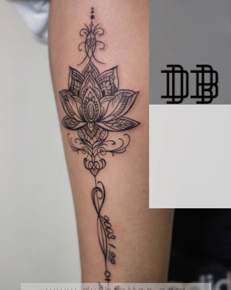一组15张莲花纹身手