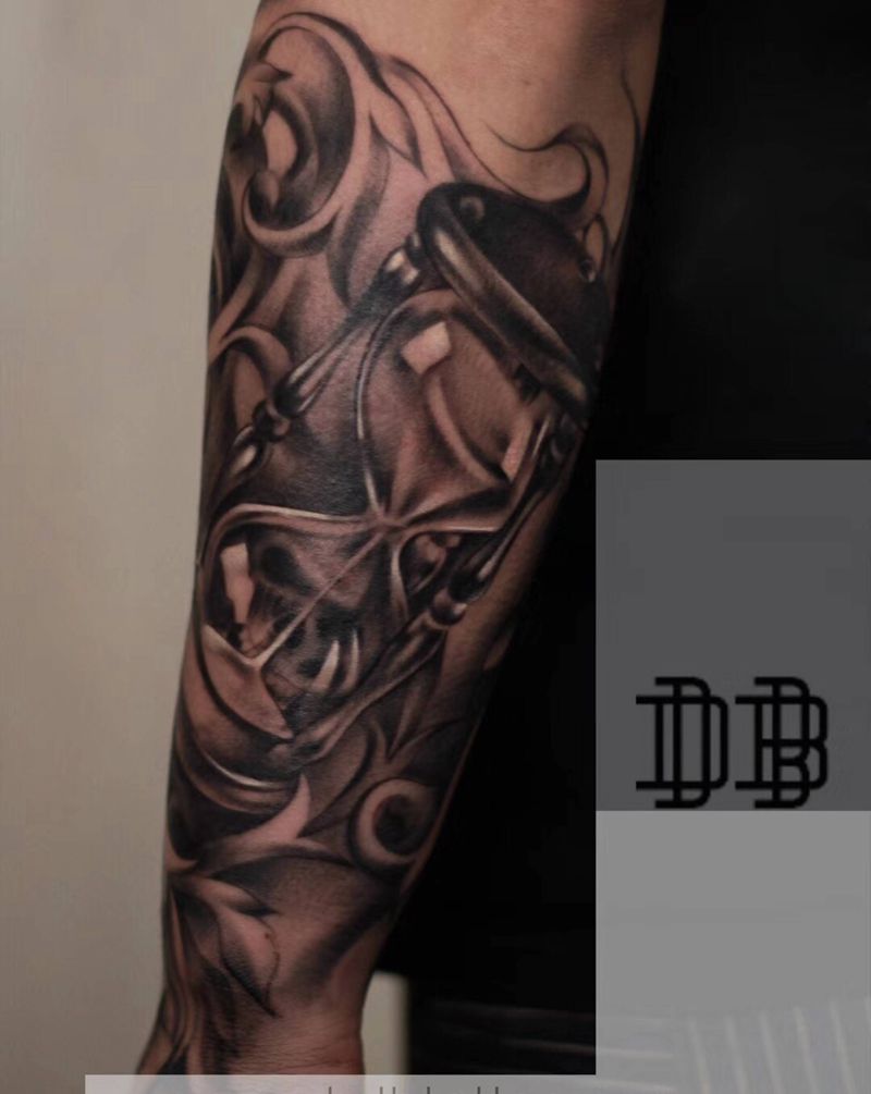 当前位置: 首页 >湖南省长沙市纹身店-深白刺青纹身图案>骷髅沙漏包臂纹身图片_手臂手部欧美写实骷髅沙漏纹身图案
