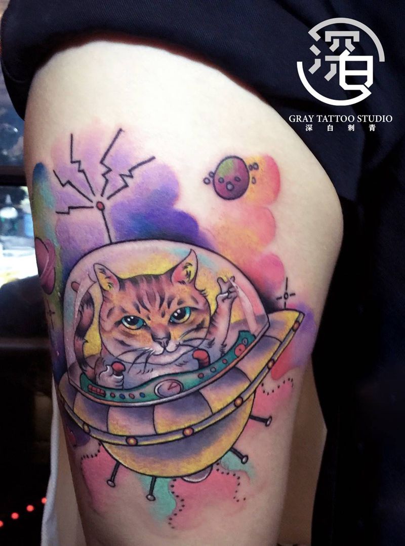 当前位置: 首页 >湖南省长沙市纹身店-深白刺青纹身图案>宠物肖像纹身图片_腿部脚部欧美写实New School猫纹身图案