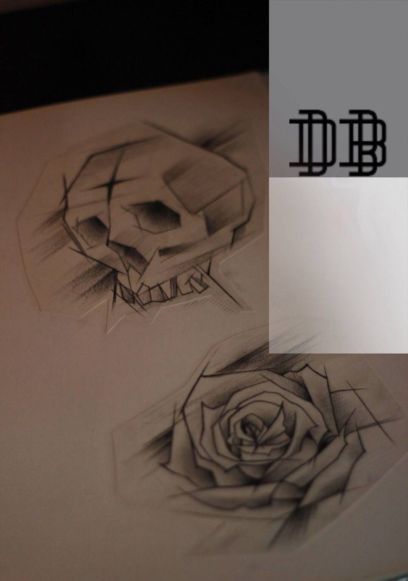 旧纹身遮盖纹身图片_肩部胸部几何欧美写实骷髅纹身图案