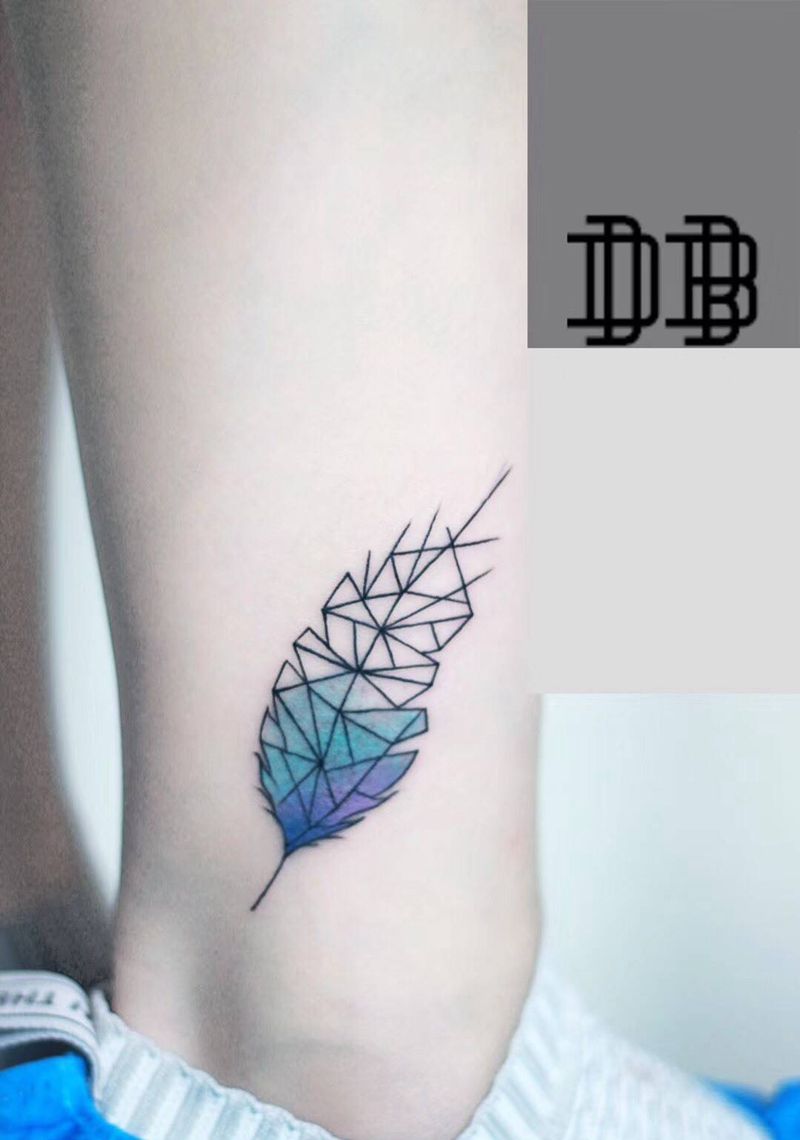 小清新纹身纹身图片_手部胸部New School欧美写实小清新猫羽毛纹身图案