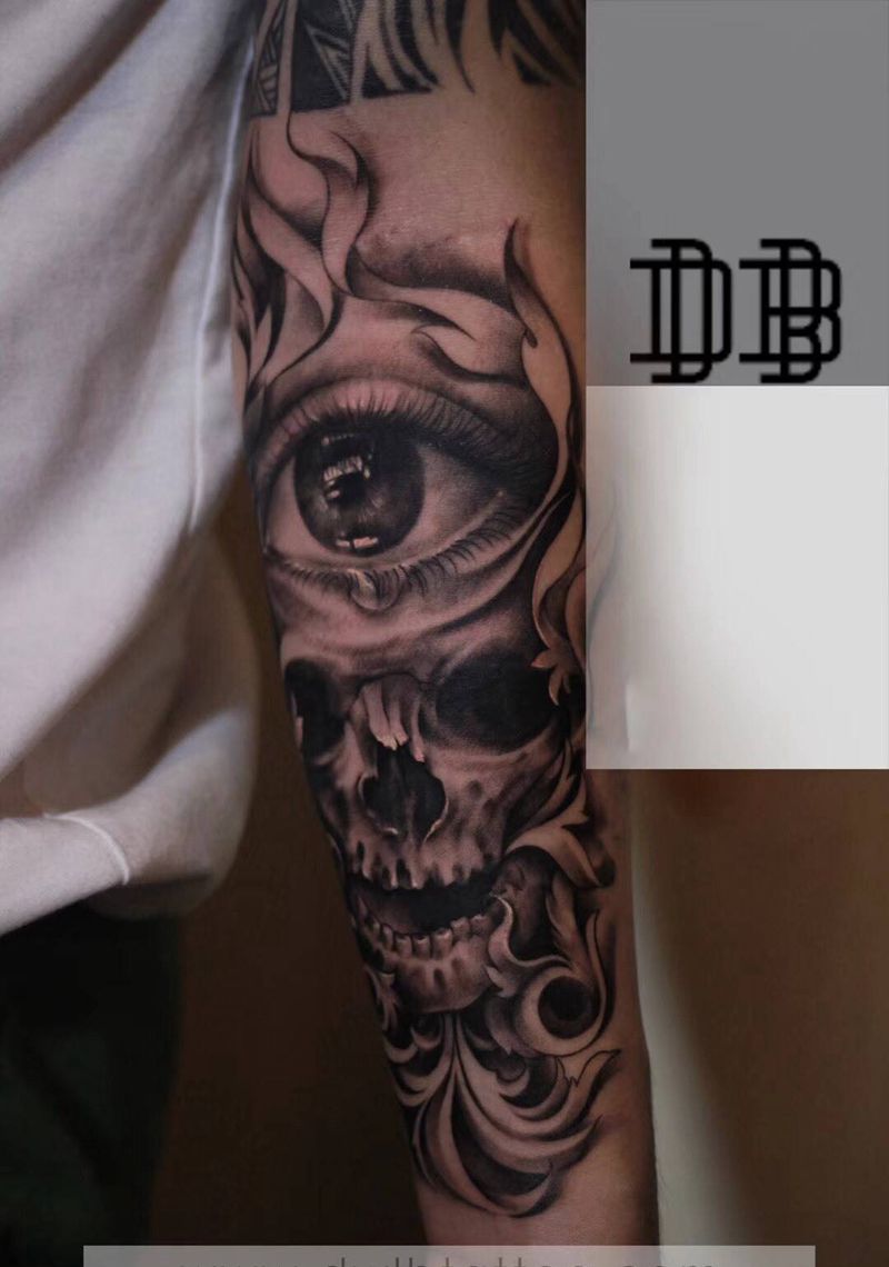当前位置: 首页 >湖南省长沙市纹身店-深白刺青纹身图案>巴洛克骷髅纹身图片_手臂手部欧美写实骷髅眼睛纹身图案