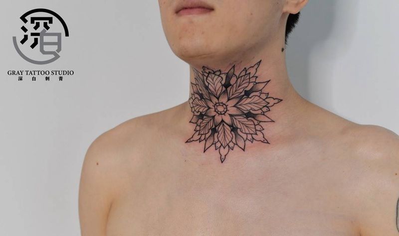 梵花纹身图片_颈部图腾点刺梵花纹身图案