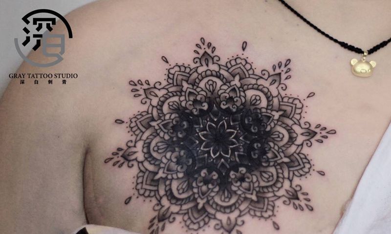 • 黑灰满背纹身图案