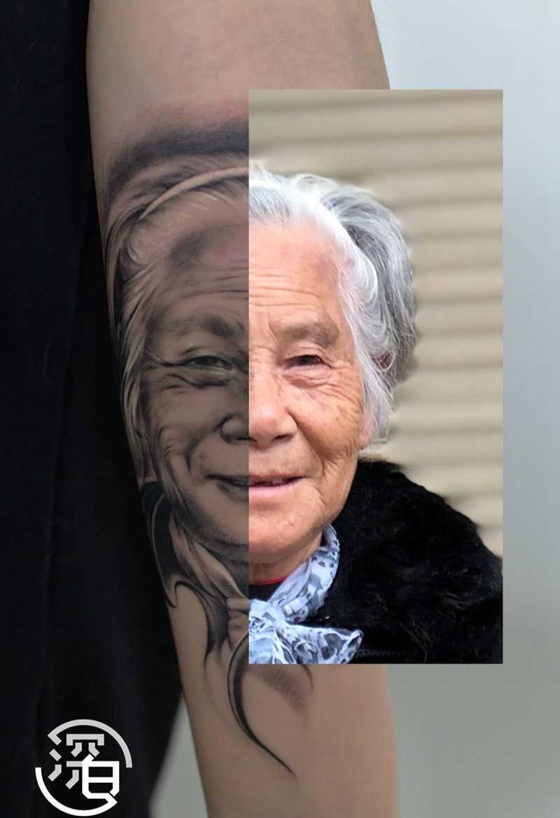 当前位置: 首页 >湖南省长沙市纹身店-深白刺青纹身图案>老人肖像纹身图片_手部手臂欧美写实肖像纹身图案