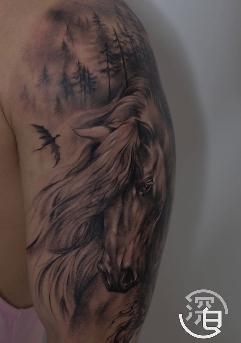 当前位置: 首页 >湖南省长沙市纹身店-深白刺青纹身图案>马纹身图片