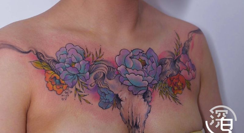 当前位置: 首页 >湖南省长沙市纹身店-深白刺青纹身图案>牛头骨花胸纹身图片_胸部欧美写实New School花牛头纹身图案