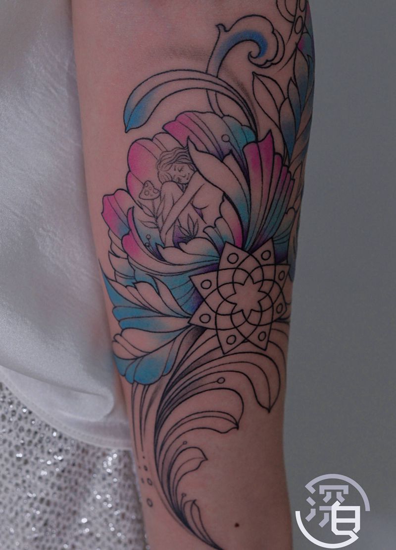 一组15张莲花纹身手