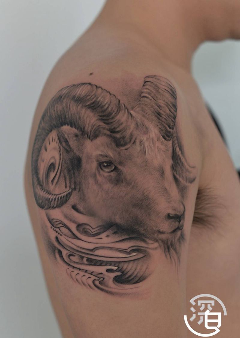 当前位置: 首页 >湖南省长沙市纹身店-深白刺青纹身图案>羊首纹身图片_手臂手部欧美写实几何羊纹身图案