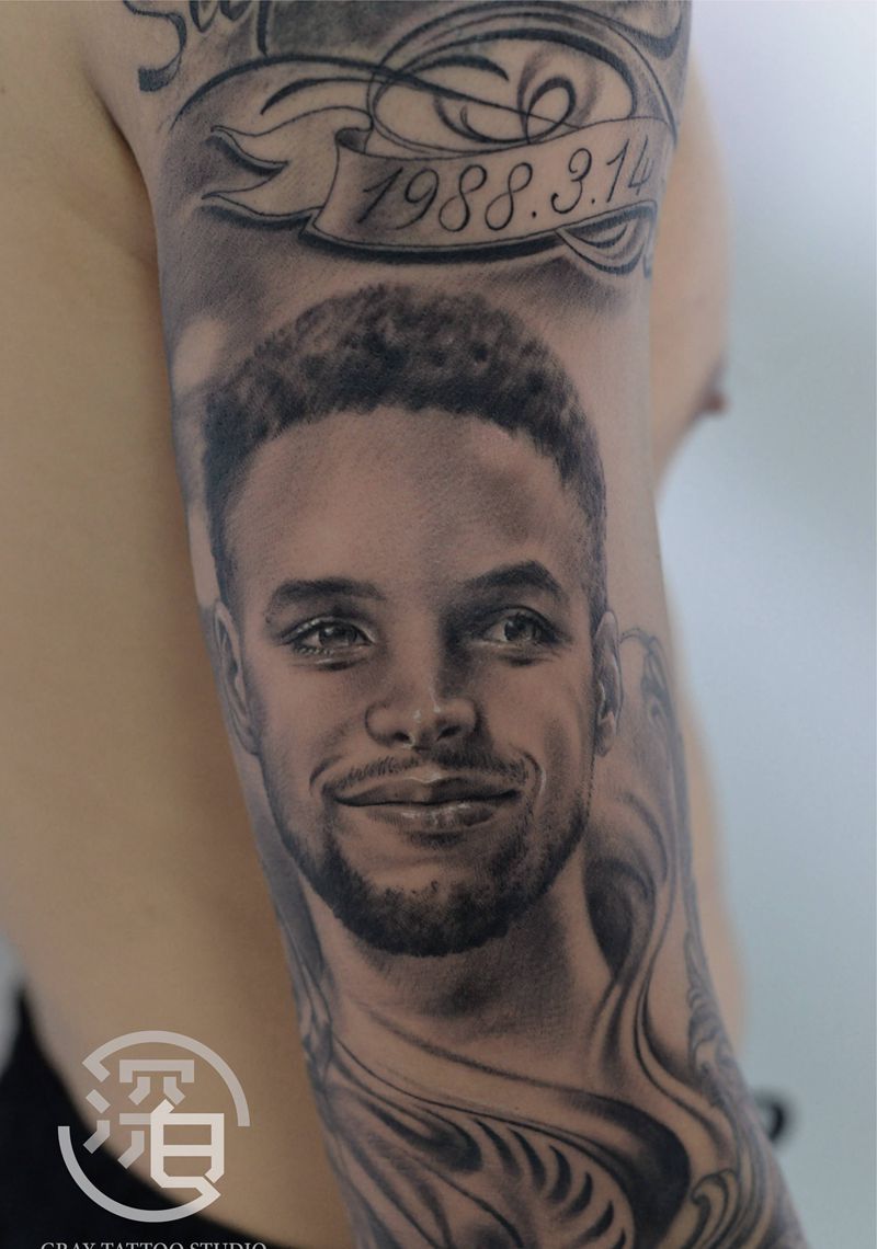 当前位置: 首页 >湖南省长沙市纹身店-深白刺青纹身图案>肖像纹身库里纹身图片_手臂手部欧美写实肖像纹身图案