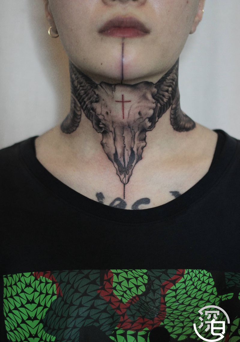 当前位置: 首页 >湖南省长沙市纹身店-深白刺青纹身图案>羊头骨纹身图片_颈部欧美写实羊纹身图案
