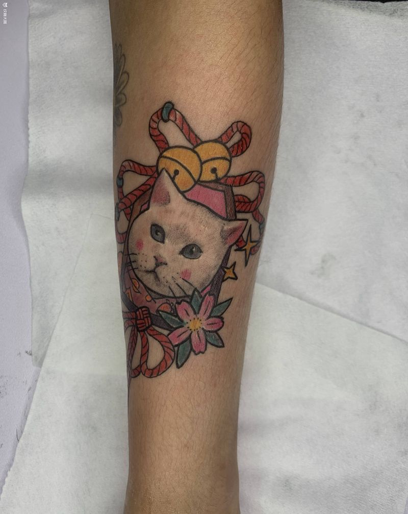 当前位置: 首页 >湖南省长沙市纹身店-墨刺青纹身图案>原创猫咪纹身图片_手臂New School纹身图案