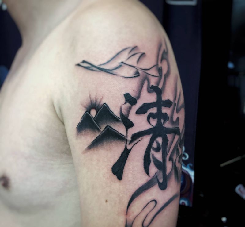 当前位置: 首页 >湖南省株洲市纹身店-清者刺青纹身图案>山水纹身图片_手臂水墨纹身图案