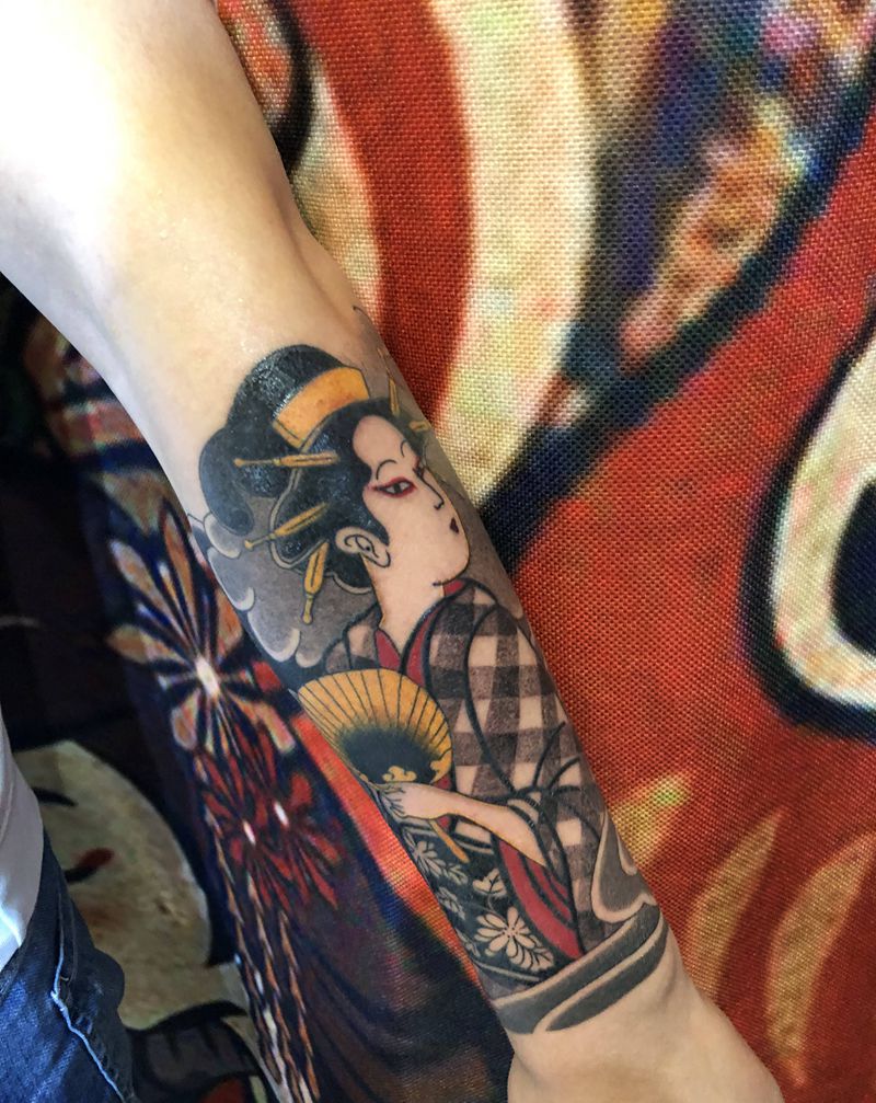当前位置: 首页 >湖南省株洲市纹身店-点青纹身纹身图案>艺妓纹身图片_手臂老传统新传统纹身图案