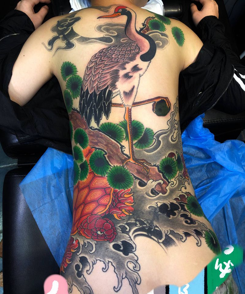 黑灰满背纹身图案