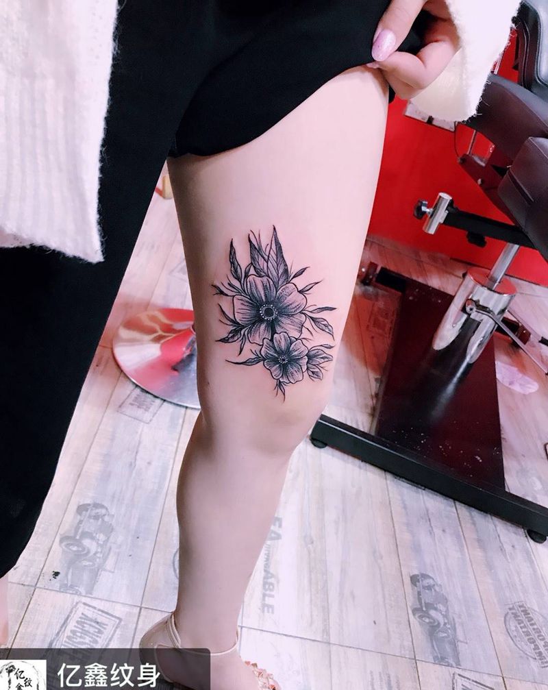 • T网红王老大花腿龙纹身图片_腿部新传统纹身图案