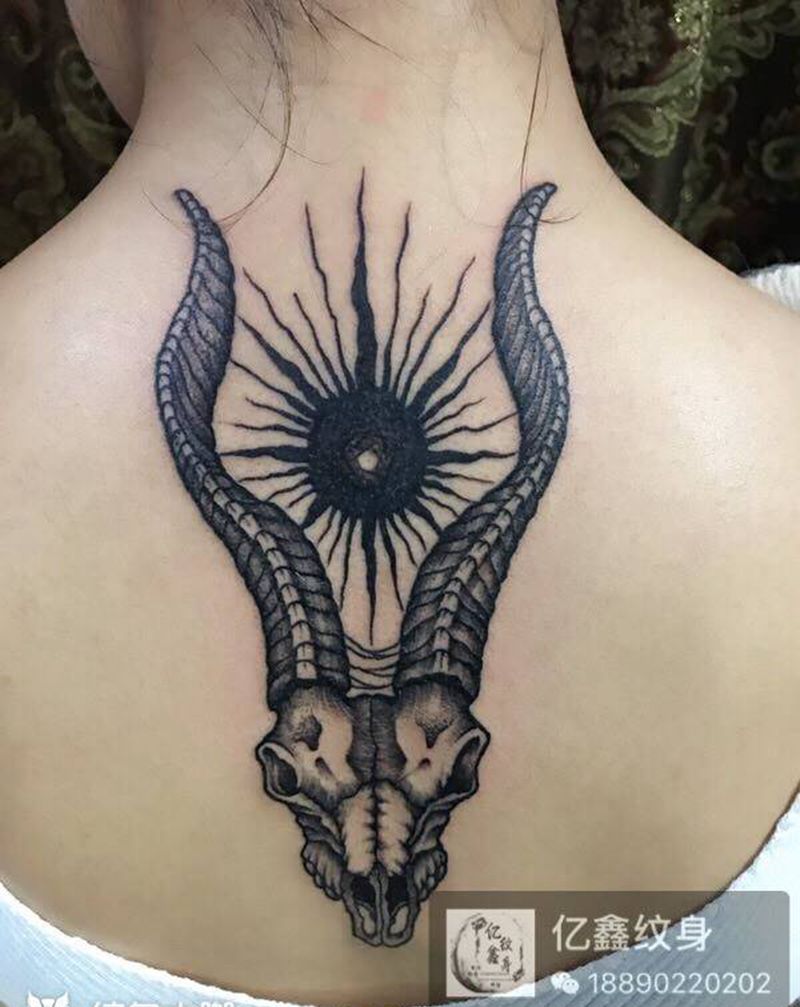 黑灰满背纹身图案
