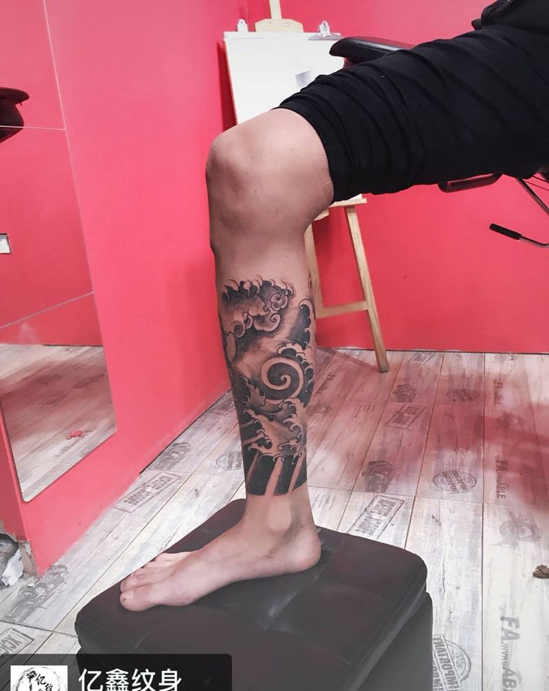 • T网红王老大花腿龙纹身图片_腿部新传统纹身图案