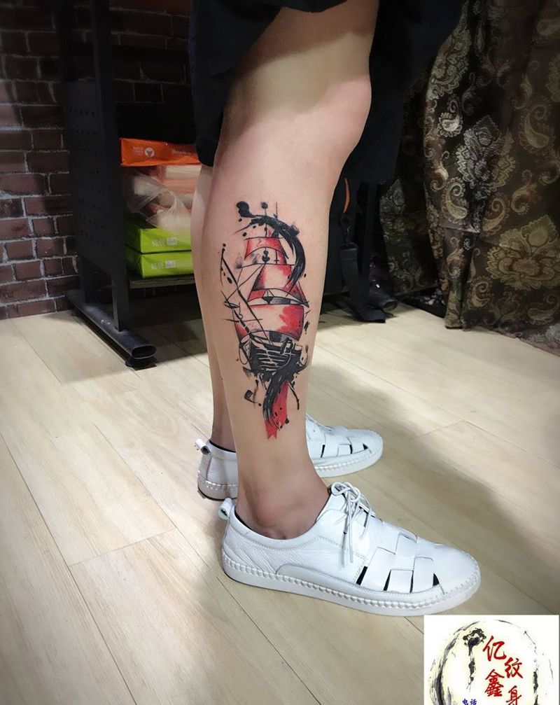 • T网红王老大花腿龙纹身图片_腿部新传统纹身图案
