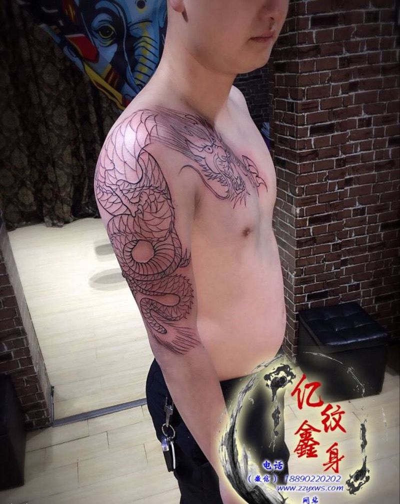 • T网红王老大花腿龙纹身图片_腿部新传统纹身图案