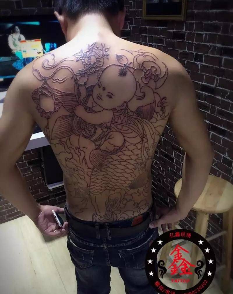 黑灰满背纹身图案