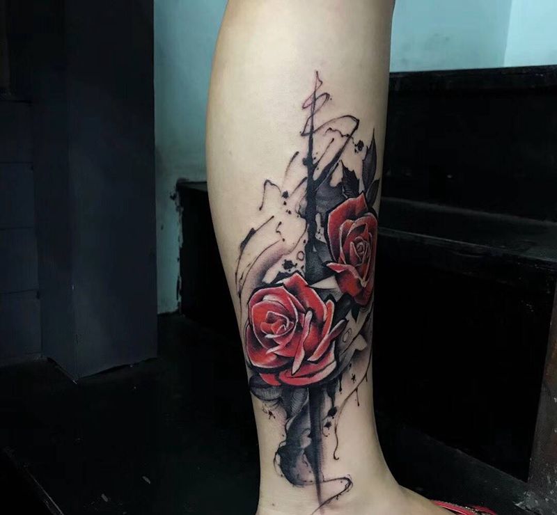 • T网红王老大花腿龙纹身图片_腿部新传统纹身图案