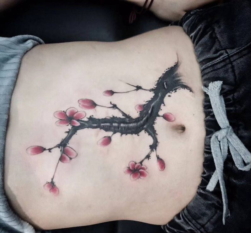 • 时尚性感的腹部莲花纹身图案
