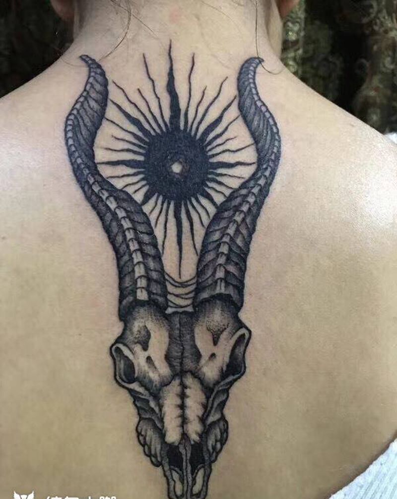 黑灰满背纹身图案