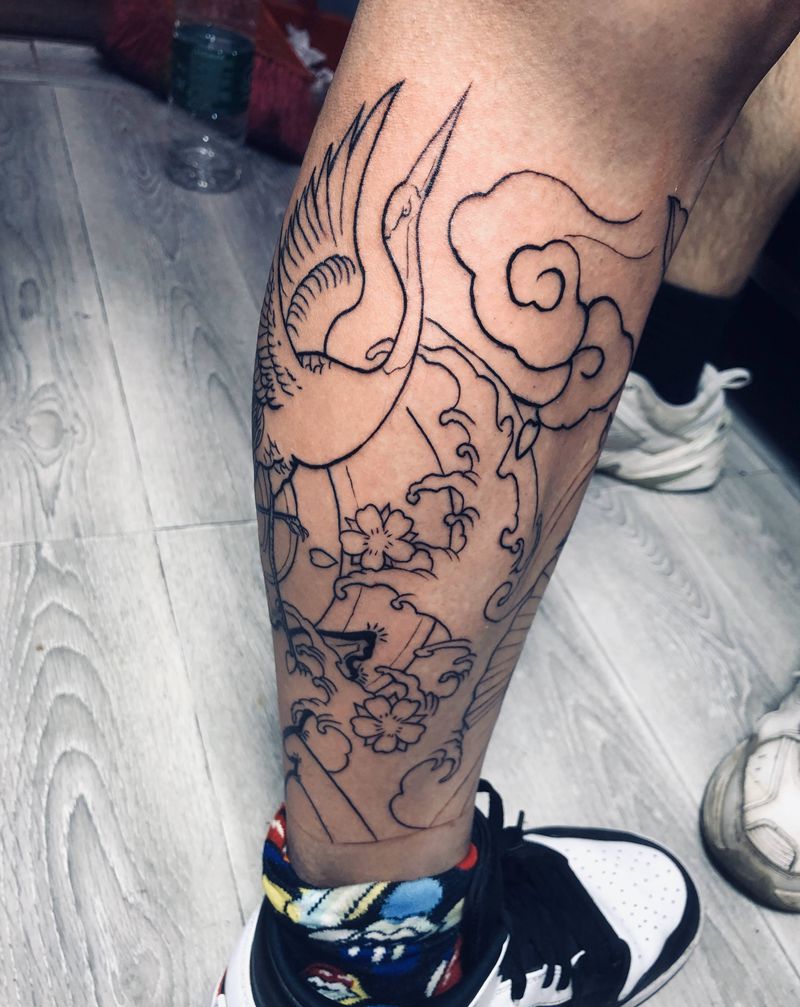 • T网红王老大花腿龙纹身图片_腿部新传统纹身图案