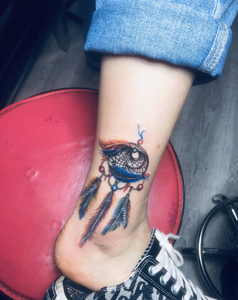 捕梦网。遮盖纹身图片_脚部捕梦网纹身图案