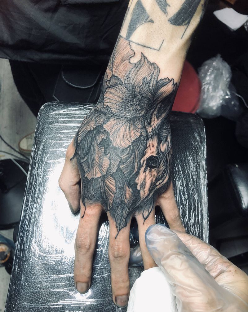 • 手背潮流时尚的玫瑰花眼睛纹身图案