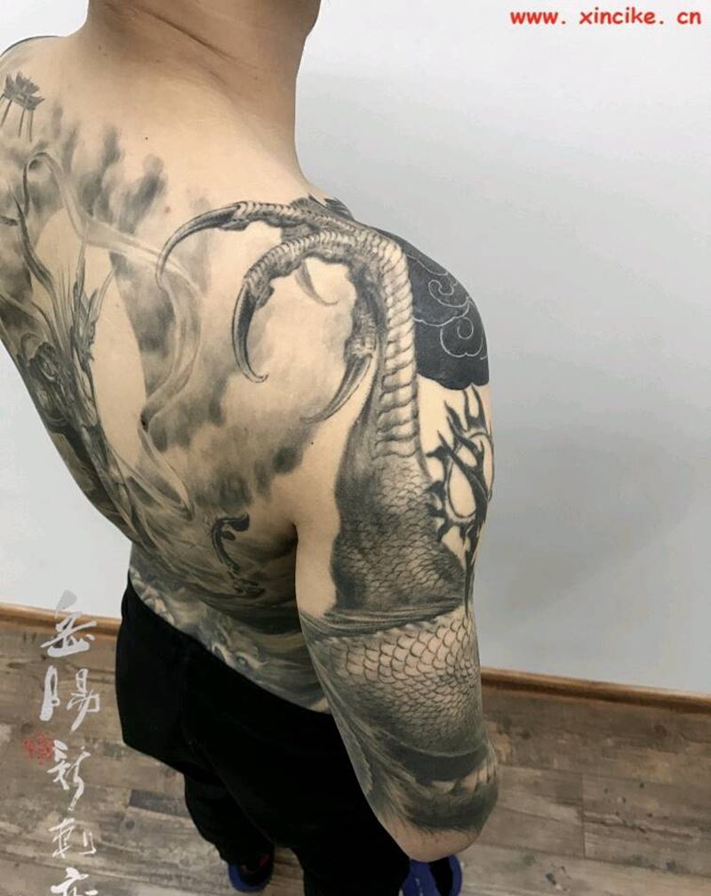 《黑臂之升云龙》纹身图片_胸部腹部背部手臂传统写实鬼神原创龙成品纹身图案