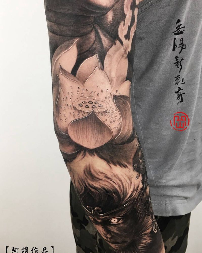 护·佑纹身图片_成品手臂传统写实原创猴子宗教佛纹身图案