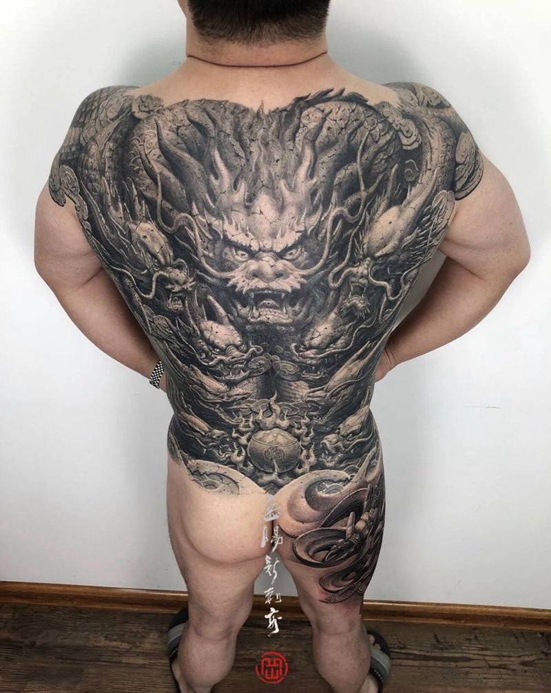 • T云龙九郎纹身图片_背部老传统云龙九郎纹身图案
