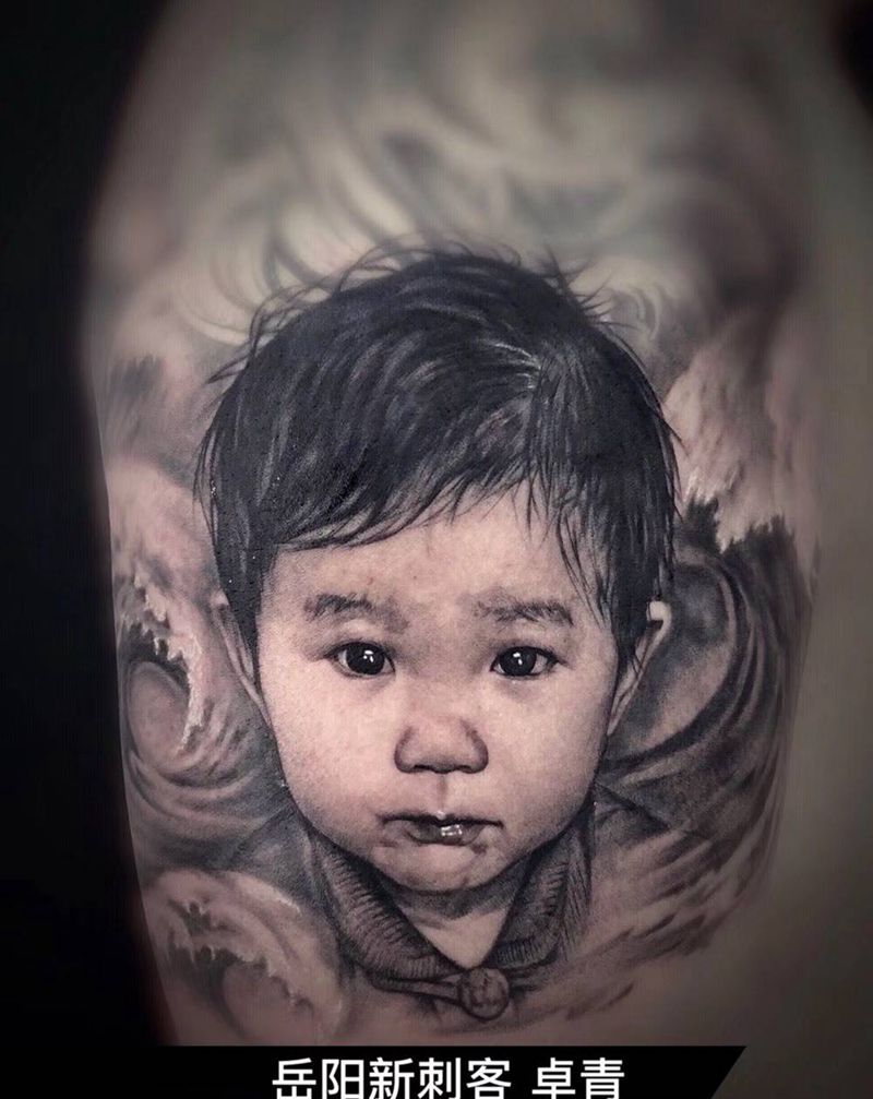 当前位置: 首页 >湖南省岳阳市纹身店-岳阳新刺客纹身图案>卓青作品纹身图片_手臂胸部欧美写实肖像纹身图案