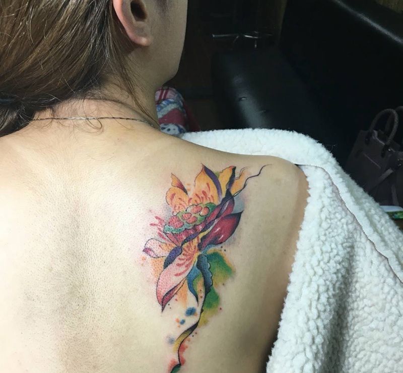 当前位置: 首页 >湖南省岳阳市纹身店-忠义堂刺青私人定制纹身图案>彩墨莲纹身纹身图片