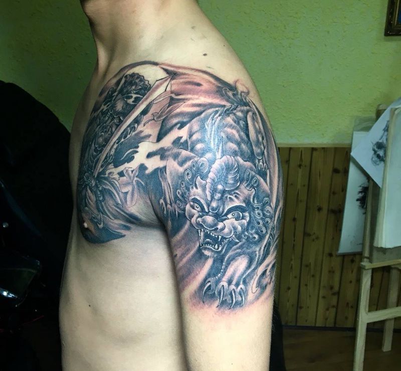 • 纹身吧推荐的披肩图腾半胛纹身图案作品展示