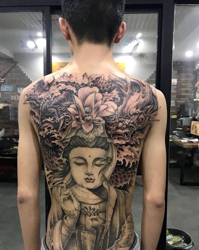 • 黑灰满背纹身图案