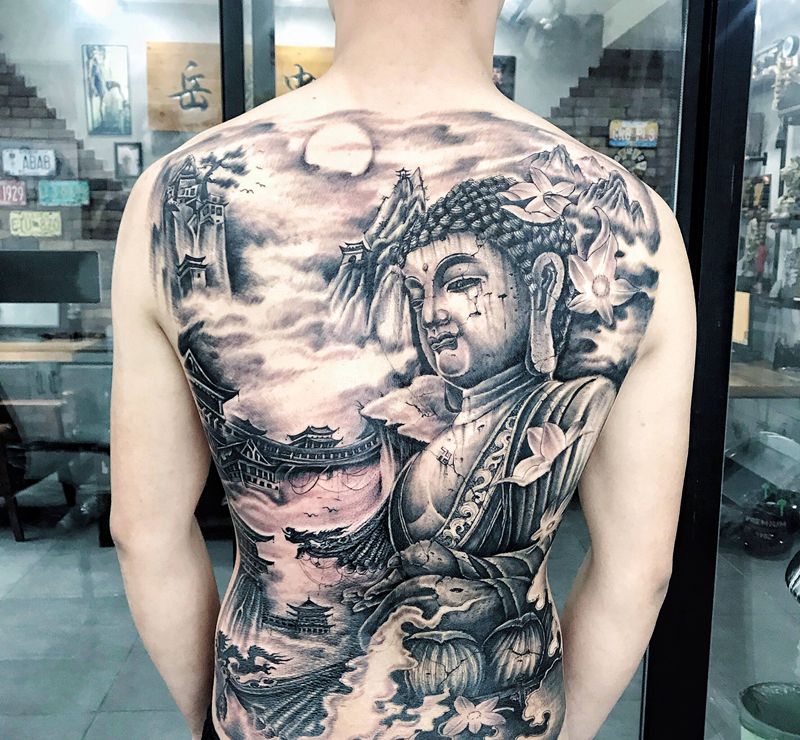 佛祖纹身图片_背部纹身图案