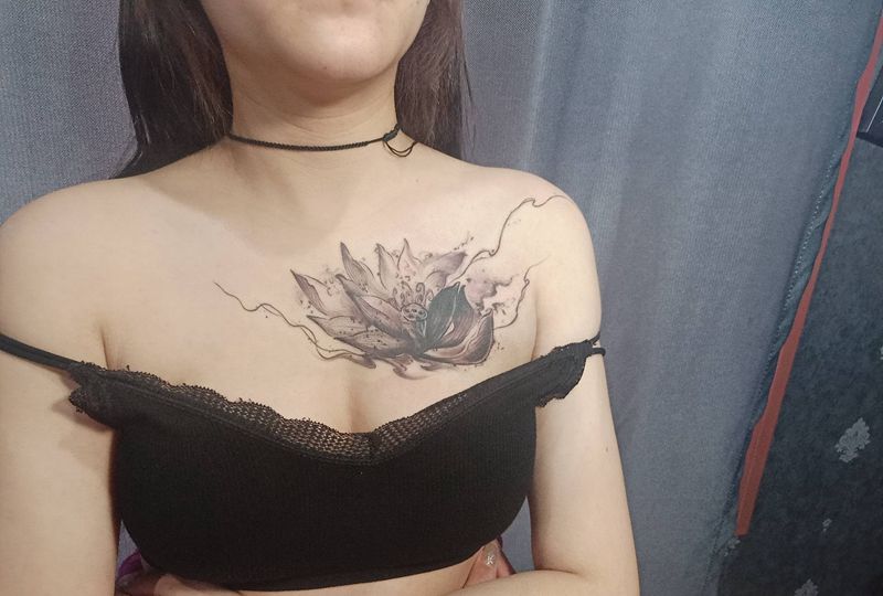 荷花 遮盖纹身图片_胸部纹身图案
