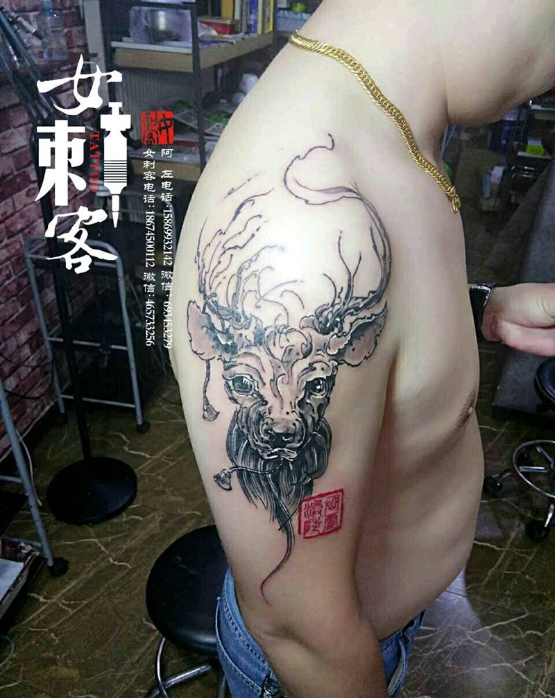 当前位置: 首页 >湖南省怀化市纹身店-湖南怀化女刺客纹刺部落纹身图案>一‘鹿’平安纹身图片