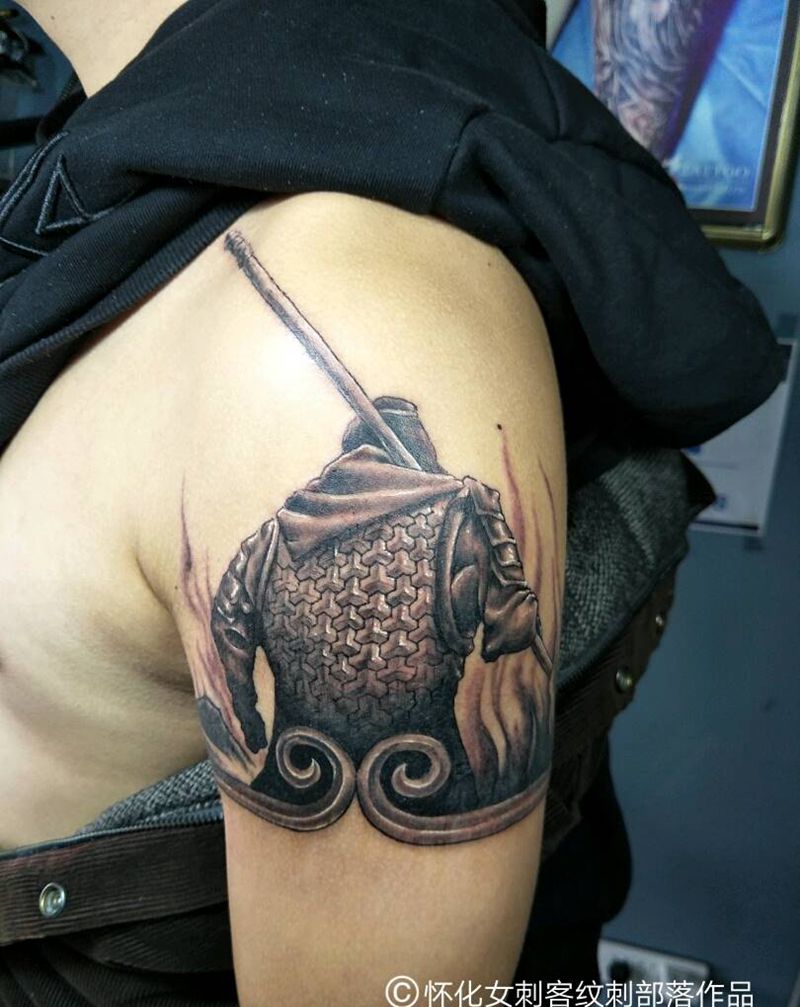 • 纹身吧推荐的披肩图腾半胛纹身图案作品展示