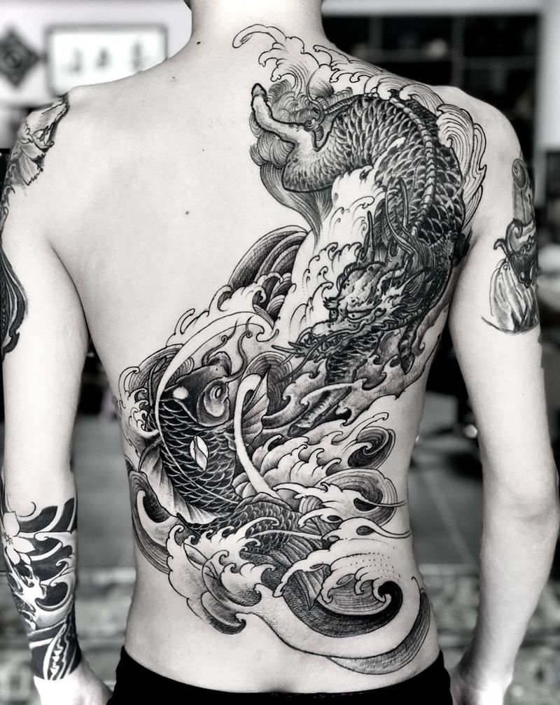 • T云龙九郎纹身图片_背部老传统云龙九郎纹身图案