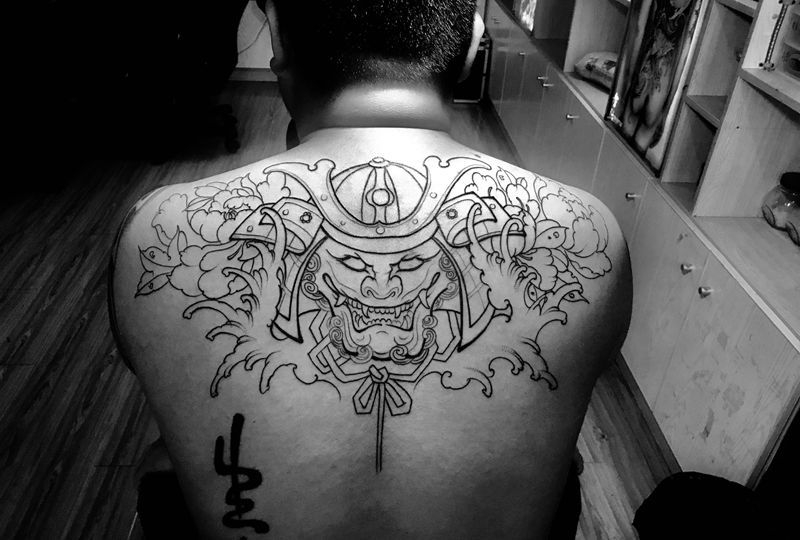 • 黑灰满背纹身图案