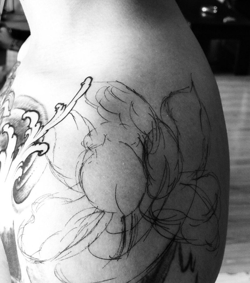 一组15张莲花纹身手