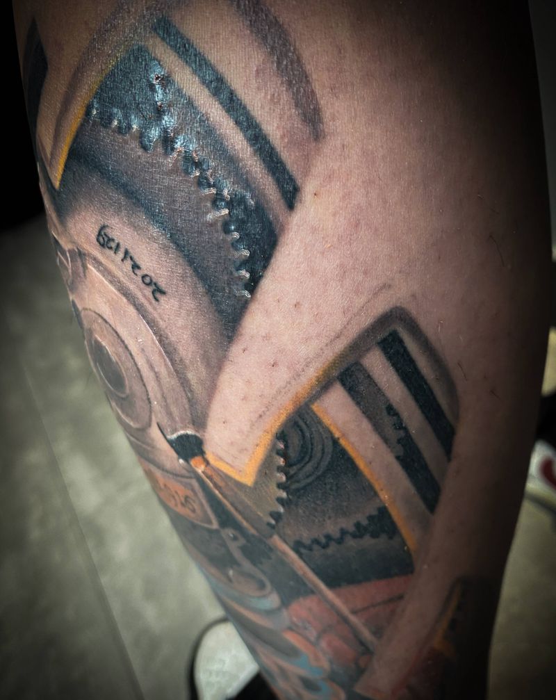 机械腿纹身图片_腿部欧美写实机械腿纹身图案