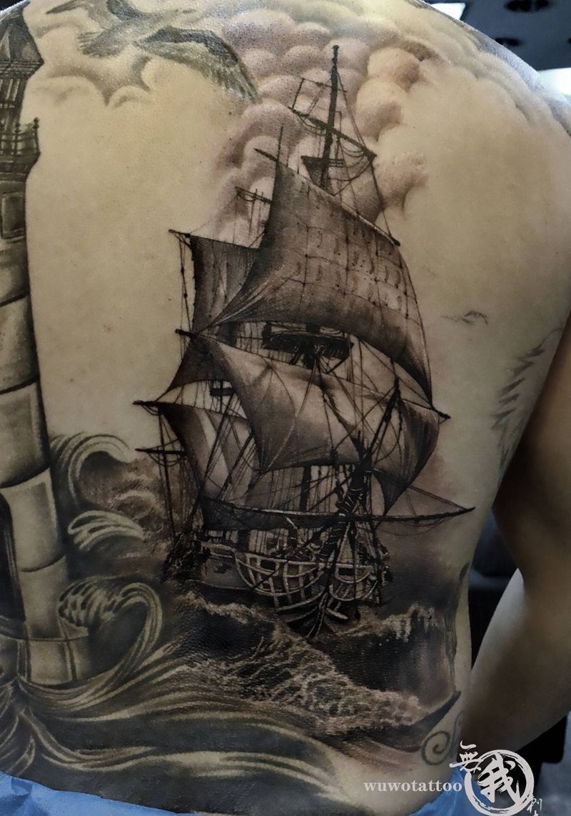 当前位置: 首页 >广东省广州市纹身店-广州纹身無我刺青tattoo纹身图案>一帆风顺纹身图片_背部欧美写实纹身图案