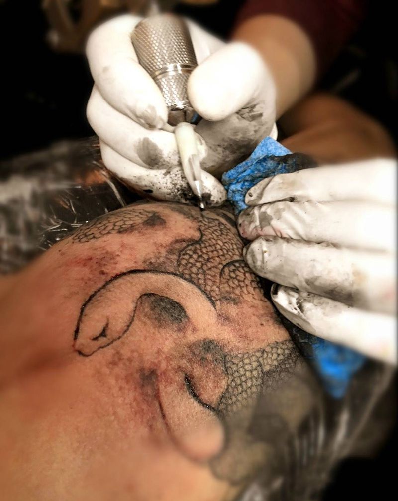 当前位置: 首页 >广东省广州市纹身店-广州纹身無我刺青tattoo纹身图案>美杜莎原创作品纹身图片_鬼神原创人物宗教欧美写实手部手臂成品手稿纹身图案